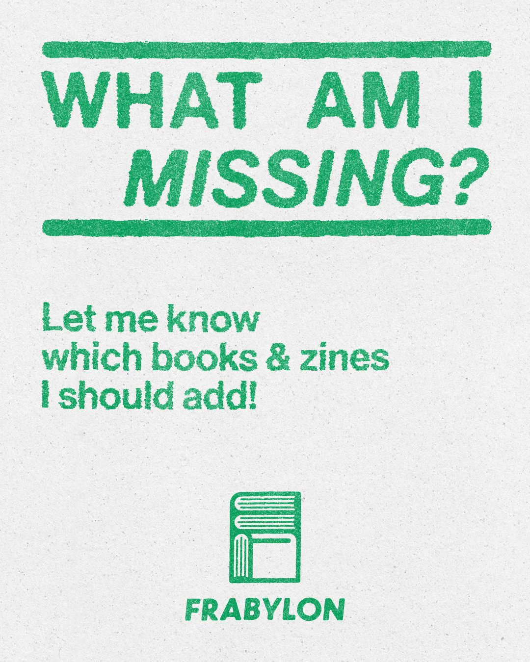 I've started collecting some interesting books / zines etc by now, but this is only a tiny scratch on the surface. let me know which books & co I'm missing and should add to the store and I'll see what I can do.